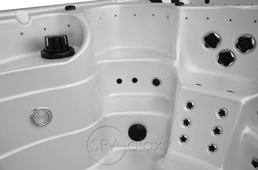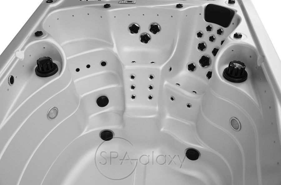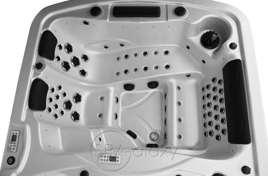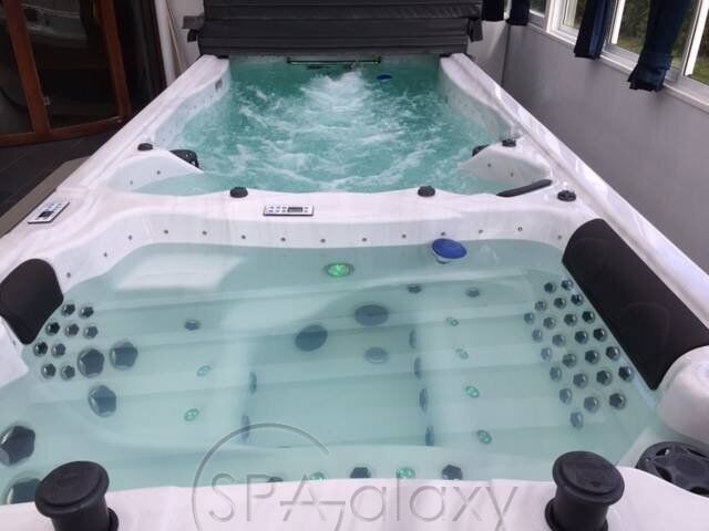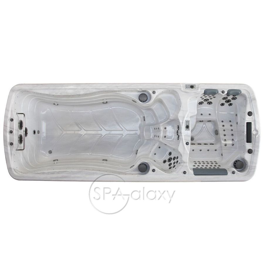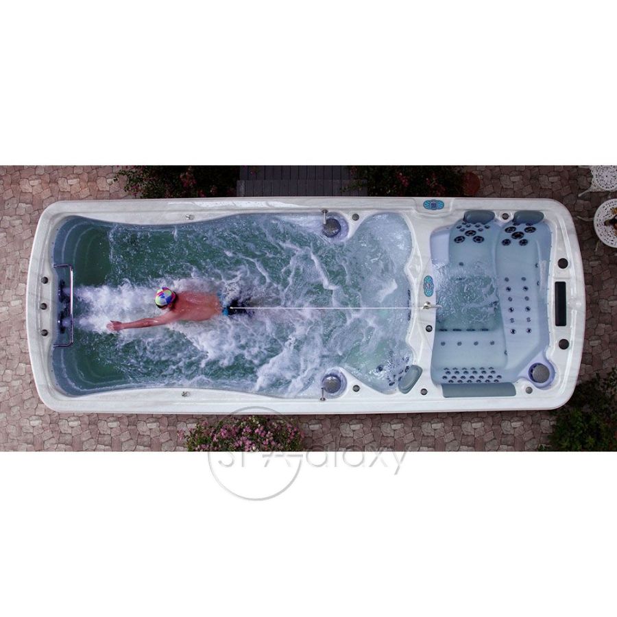 Цей спа-центр можна навіть встановити всередині наявного басейну як енергоефективну альтернативу. Цей гігантський спа-центр має простір і потужність, щоб легко розважити всю сім'ю нескінченними фітнесом і розслабленням. Три форсунки для плавання, кожна зі спеціальним насосом потужністю 3 к.с., забезпечують постійну течію води для плавання або виконання інших водних вправ. Додаткова система водного веслування дає змогу виконувати веслування та інші водні вправи з обтяженнями. А додатковий шнур для плавання може подарувати вам ще більше вражень від вправ. У "лаунджі" є шість, п'ять сидячих місць і повне крісло, що робить його одночасно гідротерапевтичним спа і гідромасажною ванною для водного фітнесу.