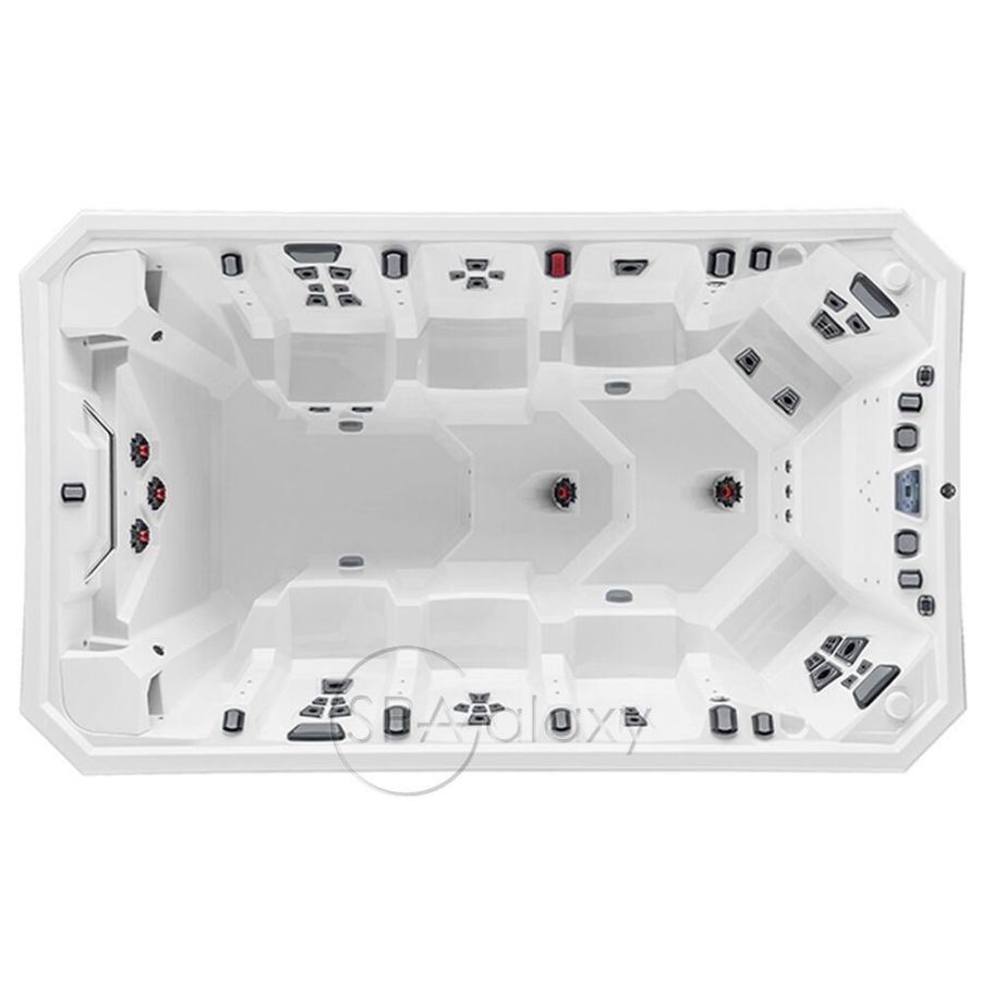 Vector21 V150 - це посудина наступного покоління з системою Vector Optimized Laminar Therapy (V-O-L-T™) управління дросельною заслінкою V3 і футуристичними Jetpods, які дають змогу вам керувати своїм досвідом. Ті самі літаки Whitewater-4 від моделей квадроциклів також додають потужного удару. Це незабутні відчуття у ванні для супер вечірки! Великий розмір включає вісім ергономічних сидінь, щоб тусовщики могли зібратися з комфортом. Крім того, довжина та справжня глибина плавання 42 дюйми (107 см) дають змогу плавцю-аматору рухатися в усьому діапазоні, а також для дітей і дітей у душі є багато бризок.