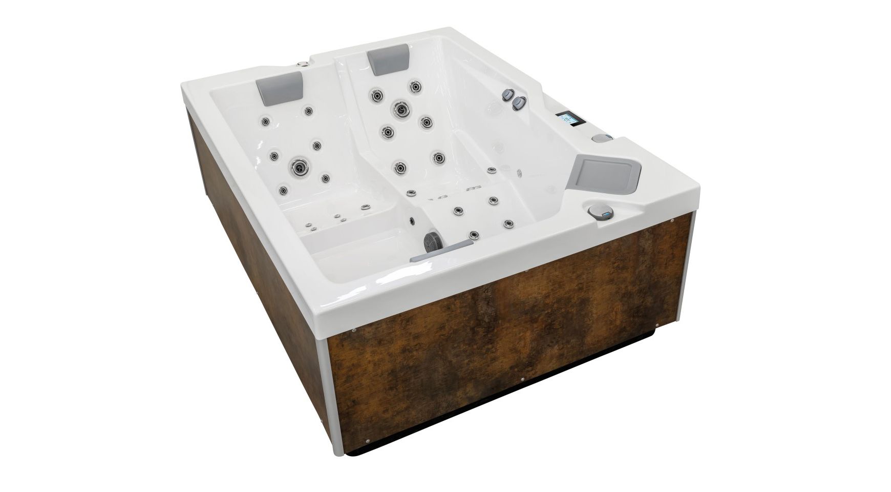 Piscinele spa cu hidromasaj din seria OKA Design se disting printr-un design sobru și laconic. Utilizarea unghiurilor drepte în design a devenit o soluție originală și un punct culminant al întregii serii OKA Design. Acordând mai multă atenție aspectului, inginerii nu au uitat de conținutul funcțional. Un set de duze hidro- și aero-jet este distribuit ergonomic în jurul întregului perimetru al scaunelor.