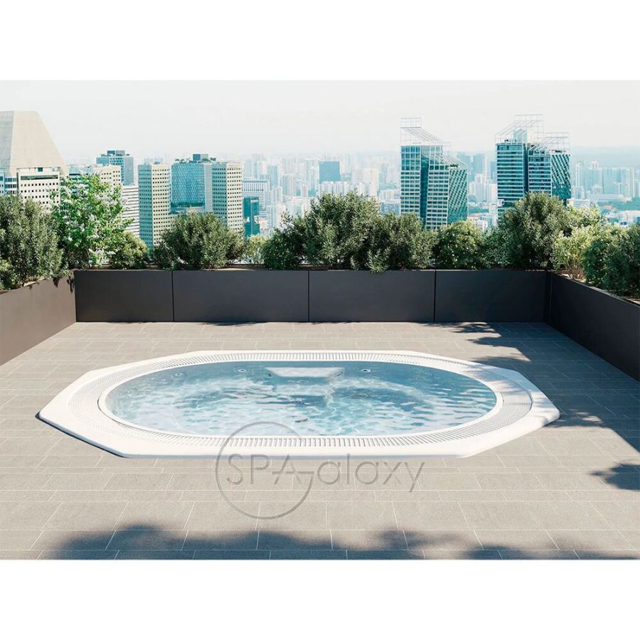 Spa Hydra este impresionant: jacuzzi-ul, care arată mai mult ca o piscină decât ca un jacuzzi, poate găzdui 10 persoane. Este poziționat ca un jacuzzi de capacitate mare cu performanțe excelente pentru centre de sănătate și întreprinderi, facilități de agrement și complexe sportive. Cumpărarea unui jacuzzi precum Hydra înseamnă prioritizarea eficienței în situații de trafic intens, cu o formă poligonală cu 8 laturi, cu două laturi care sunt mai lungi decât celelalte pentru a reduce distanța dintre utilizatori.