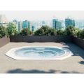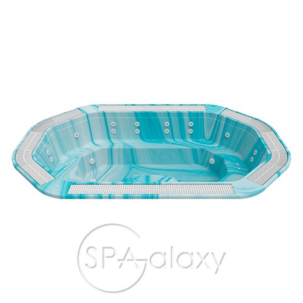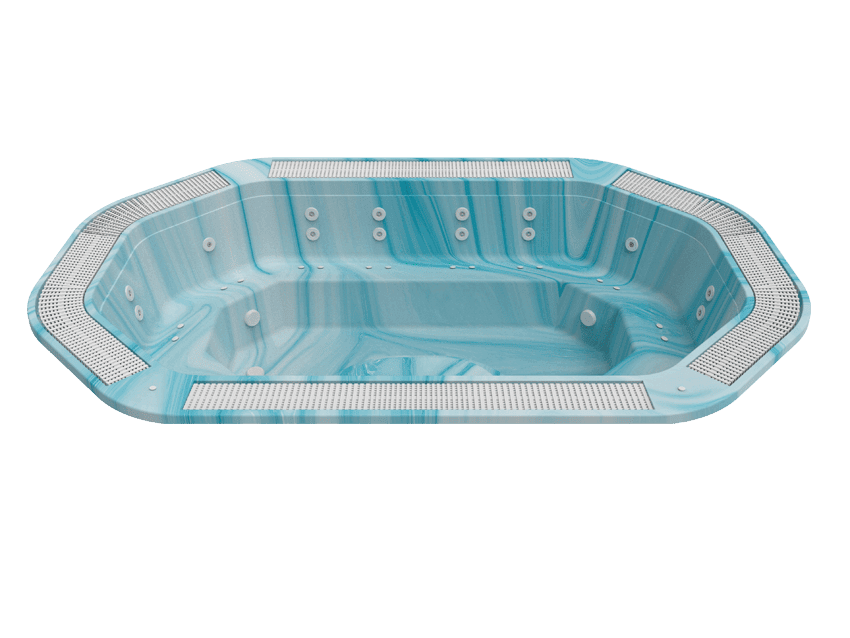 Această cadă cu hidromasaj profesională de mari dimensiuni are un design impresionant care îi conferă un aspect deosebit și îmbunătățește imaginea încăperii sau instalației din care face parte. Este o cadă cu hidromasaj cu revărsare, cu opțiunea de a adăuga un rezervor de expansiune de până la 2000 de litri pentru a returna apa revărsată prin grilă atunci când sunt mai puține persoane în cadă.