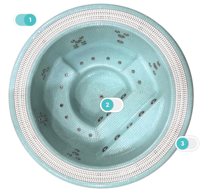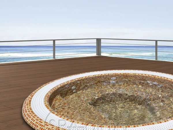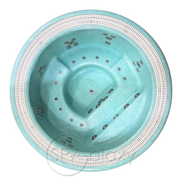 Mozaicul de sticlă oferă jacuzzi-ului dvs. un aspect individual. Acesta este realizat folosind mozaicuri ceramice de înaltă calitate. Jacuzzi-ul este disponibil într-o gamă largă de configurații de culori.