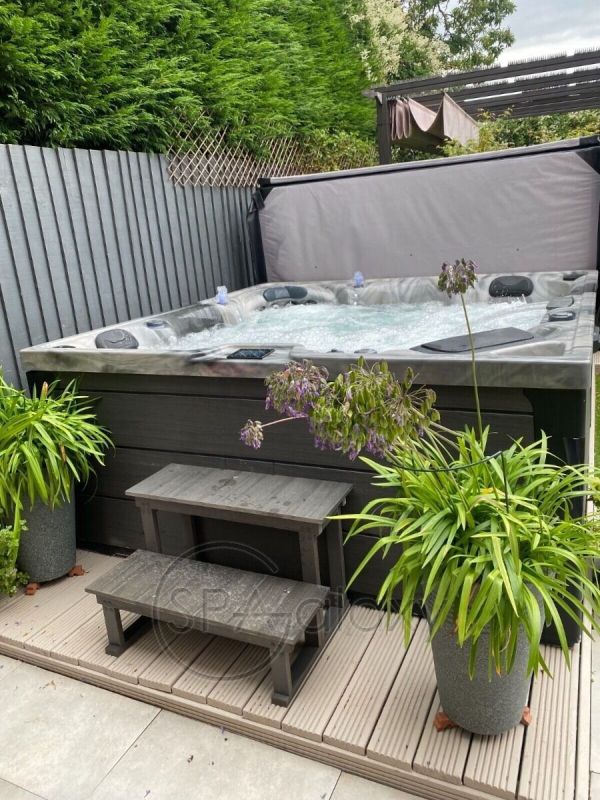 Intrarea și ieșirea din cada cu hidromasaj este ușoară cu pașii corespunzători care sunt incluși în kitul pentru cada cu hidromasaj Platinum Spas. Prelungiți durata de viață a capacului pentru jacuzzi prin achiziționarea unui dispozitiv de ridicare a capacului, care va face, de asemenea, mult mai ușor de deschis și închis.