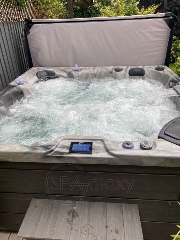 Cu două șezlonguri de dimensiuni normale pentru adulți și trei scaune, aceasta este cada cu hidromasaj perfectă pentru până la cinci persoane.