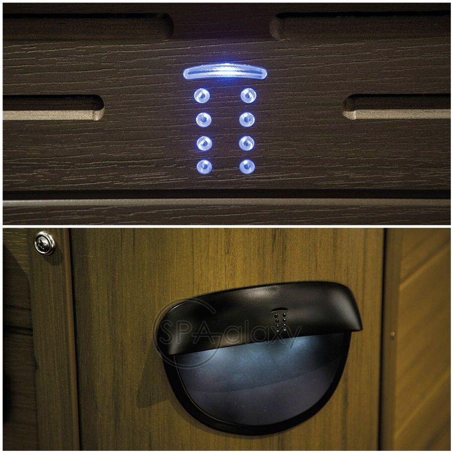 Structura EnduraFrame™ este complet umplută cu spumă și are un capac de protecție (fără lemn). Căptușeala exterioară acrilică EnduraWood™ este rezistentă la UV, reduce zgomotul și vibrațiile și împiedică pătrunderea umidității și a insectelor. Sistemul de filtrare WellSpring™ cu un sistem dublu de filtrare menține apa curată. Există, de asemenea, iluminare LED multicoloră, o gură de scurgere în cascadă, tetiere căptușite și suporturi iluminate pentru băuturi. Un sistem audio opțional poate fi instalat.