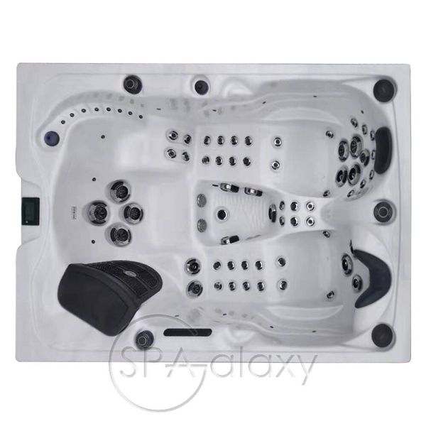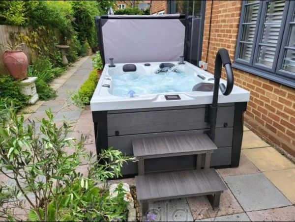 Cu două șezlonguri pentru adulți și un scaun, acesta este spa-ul perfect pentru două persoane, dar poate găzdui și trei.