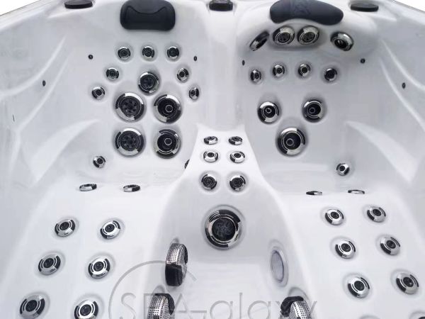 Topaz este o cadă cu hidromasaj compactă pentru trei persoane, cu două șezlonguri și un scaun. Dispune de jeturi puternice, elemente de apă și iluminare LED. În ciuda dimensiunilor sale, Topaz utilizează 2 pompe de 3 CP, oferind o presiune puternică a jeturilor și o experiență impresionantă de hidroterapie.