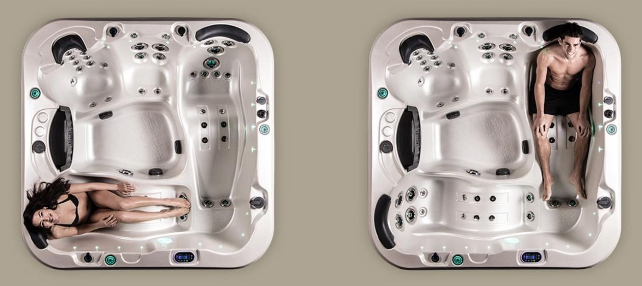 Două șezlonguri oferă hidroterapia perfectă pentru întregul corp, în timp ce scaunele oferă masaj pentru diferite zone ale spatelui și termoreglare.