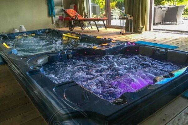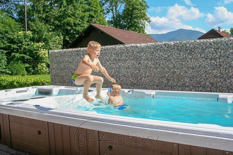 Două zone îi vor găzdui confortabil pe cei dragi pentru relaxare și sport. În același timp, puteți alege un regim de temperatură diferit în fiecare zonă a piscinei spa.