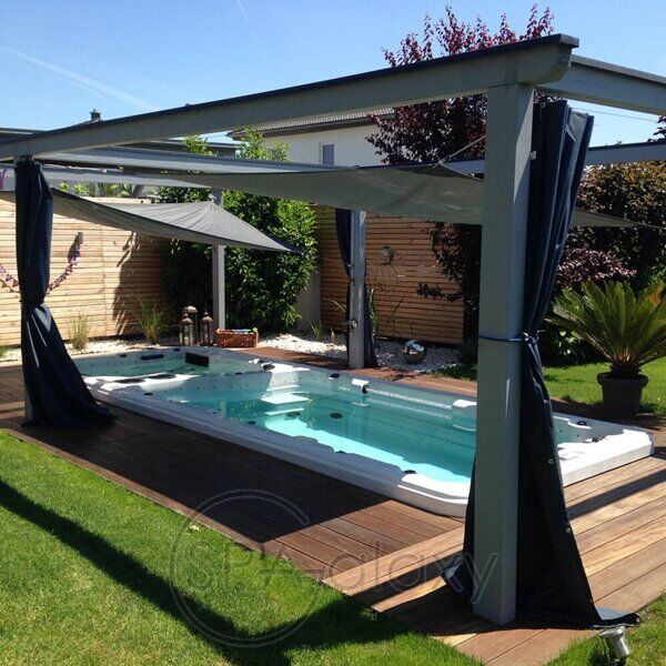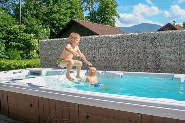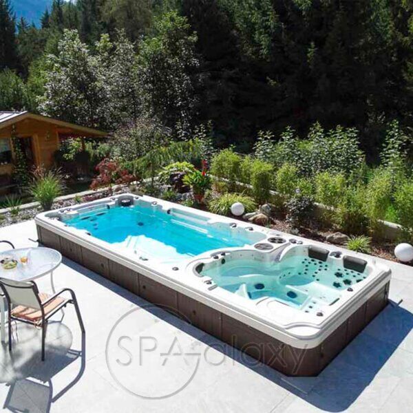 Este un spa de înot profesional. Există trei jeturi de înot unice instalate în zona piscinei. Este o pompă, un jet, fiecare jet are o pompă de înot de 3 CP.