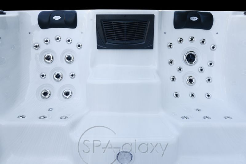 Este locul perfect pentru 6 adulți (4 locuri de masaj în secțiunea jacuzzi și 2 locuri de relaxare în secțiunea swim spa) cu jeturile sale puternice de hidroterapie și sistemul de iluminare cu LED.