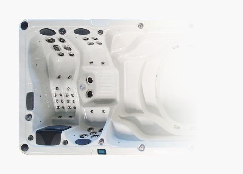 Zelus conține jeturi puternice, caracteristici de apă și lumini LED. Folosind 3 x 3HP în secțiunea de înot, presiunea jeturilor este puternică, astfel încât experiența de hidroterapie este excepțională.
